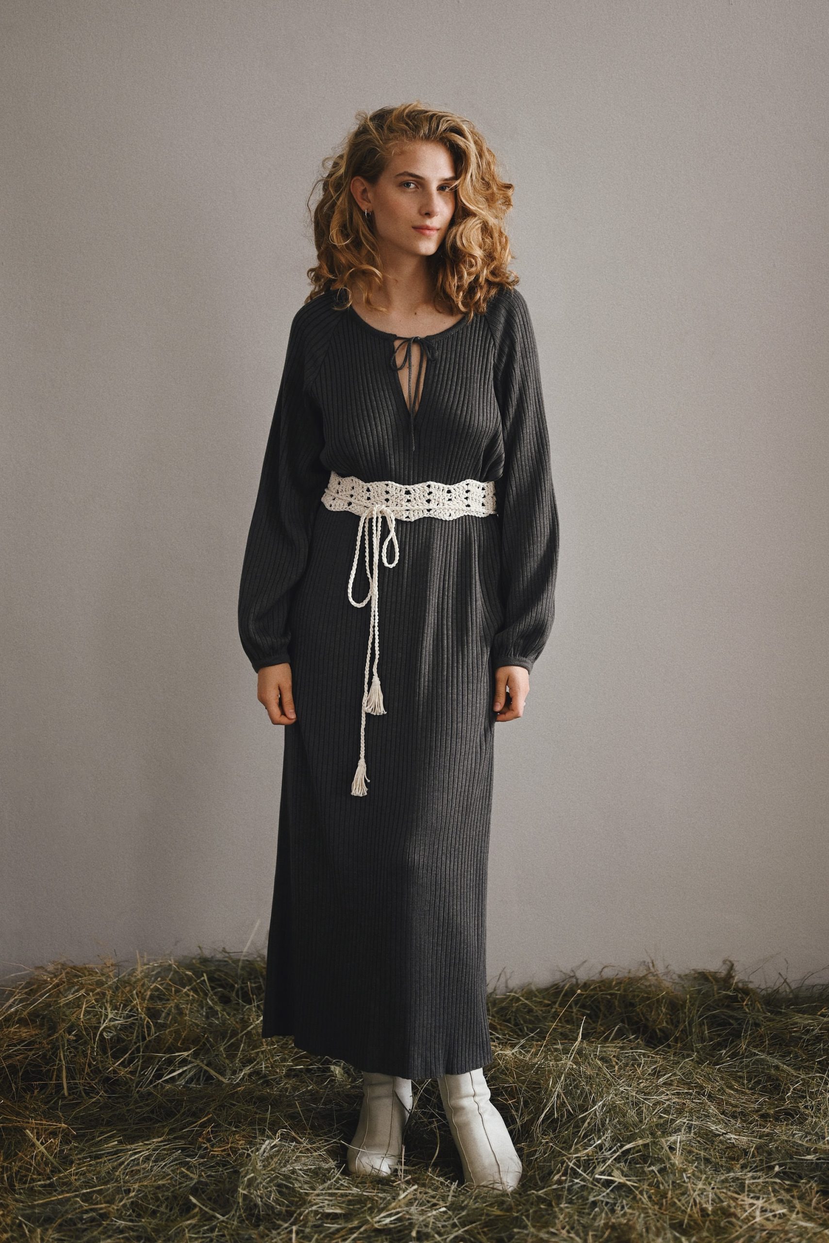 Hand Crochet Cotton Tie Belt: Bohemian Brown Waistband With Tassels