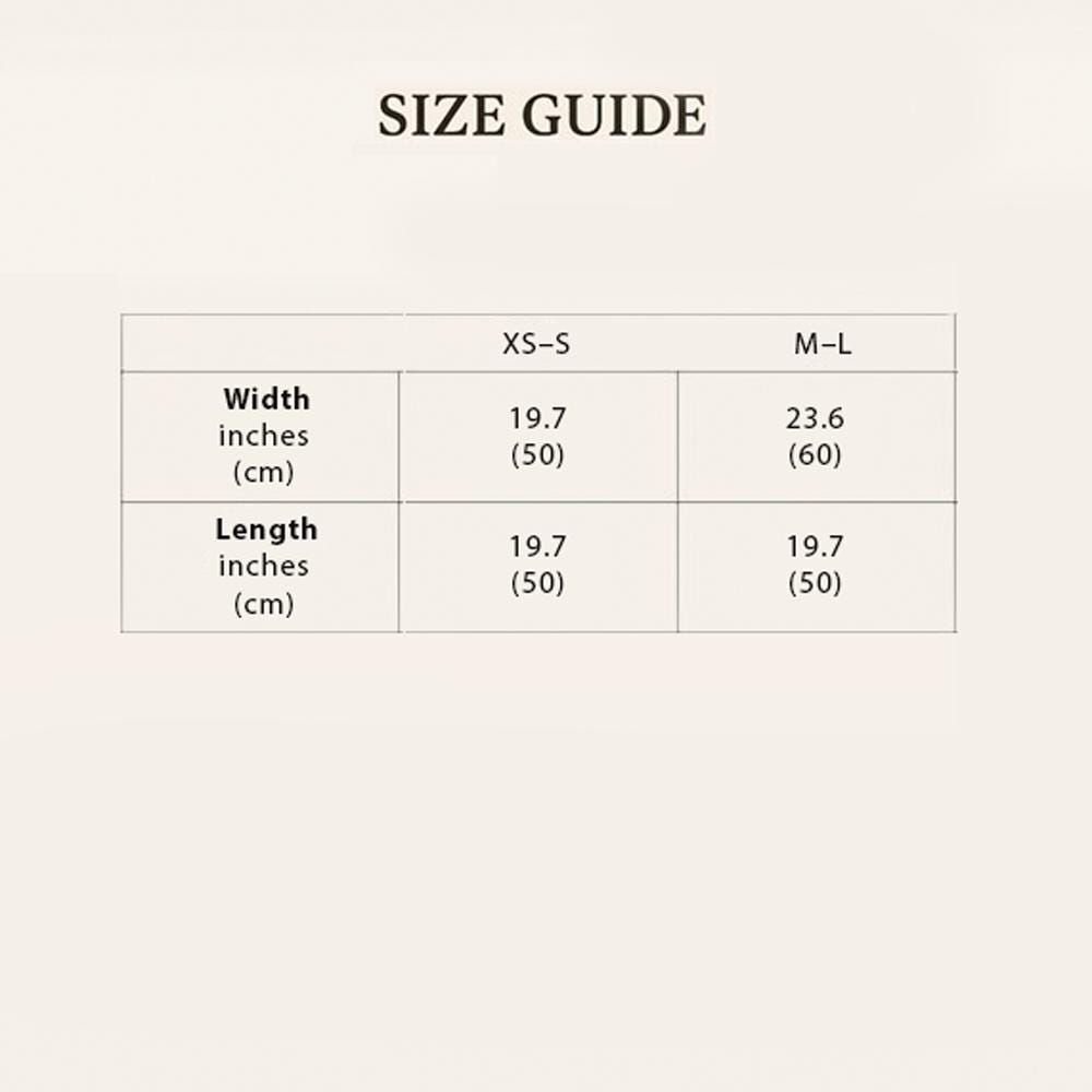 - XS–S – Width: 50 cm (19.7″), Length: 50 cm (19.7″)