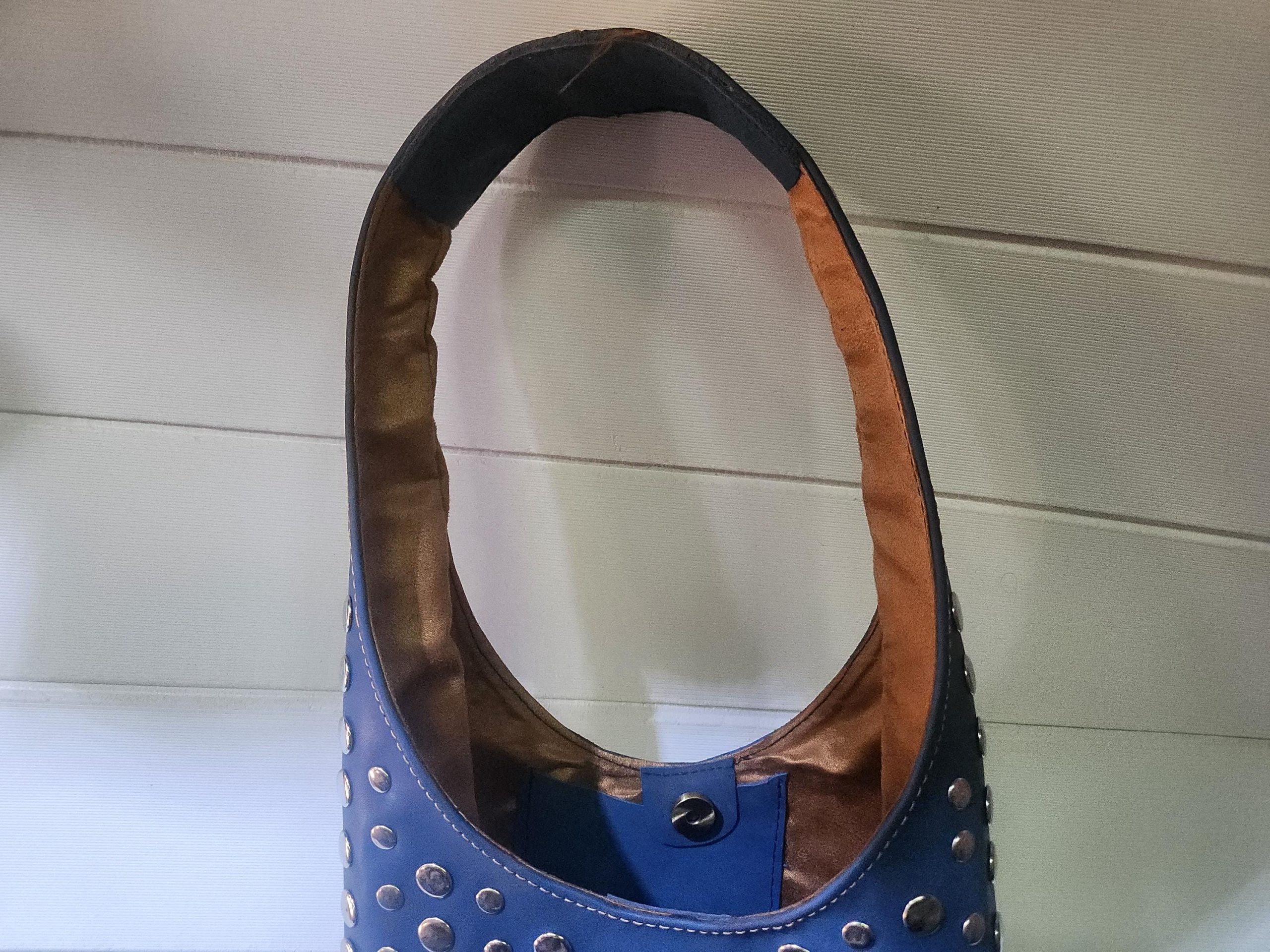 Add a calm and elegant touch to your outfit with this handmade Moroccan purse, crafted from soft light blue leather and beautifully adorned with shiny metallic silver studs. This stunning shoulder bag blends Moroccan craftsmanship with modern boho-chic flair — perfect for those who love unique, statement accessories.